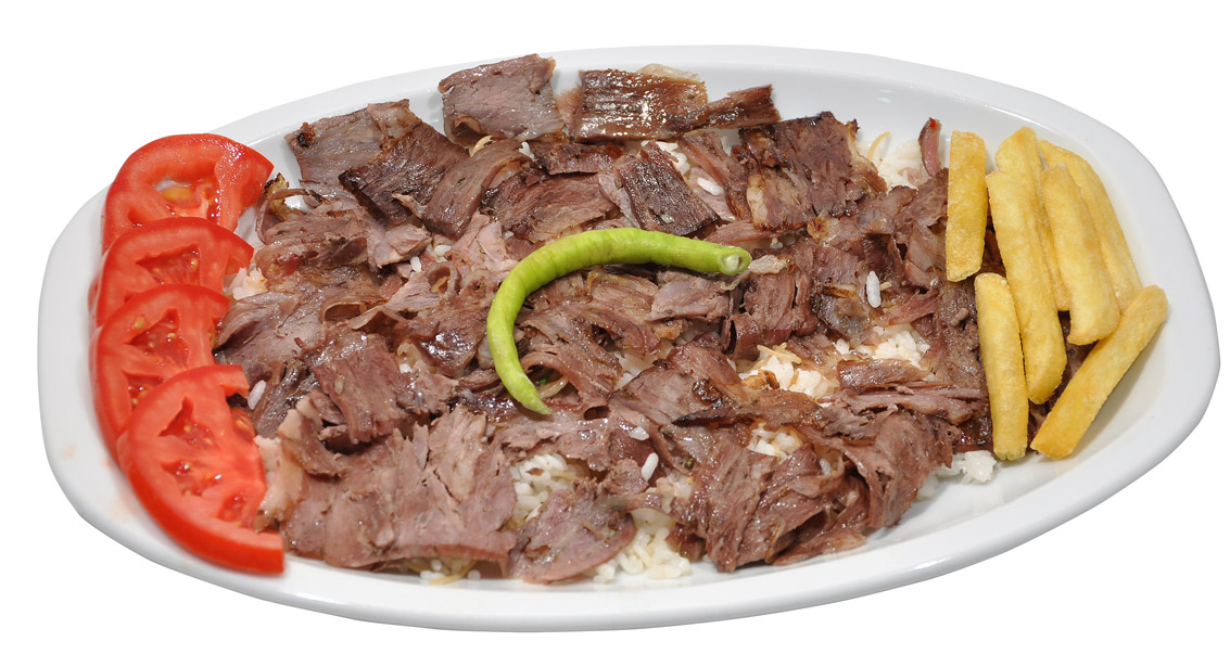 130G YAPRAK DÖNER, DOMATES SOS, YOĞURT, PİDE, KÖZLENMİŞ BİBER, TEREYAĞI İLE SERVİS EDİLİR.